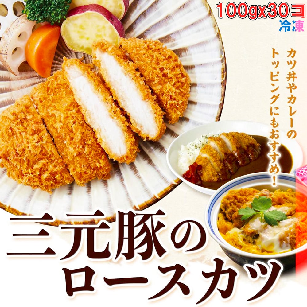三元豚のロースカツ 100g 30個入 冷凍 ボリューム感があり豚肉本来の旨味と食感が味わえます